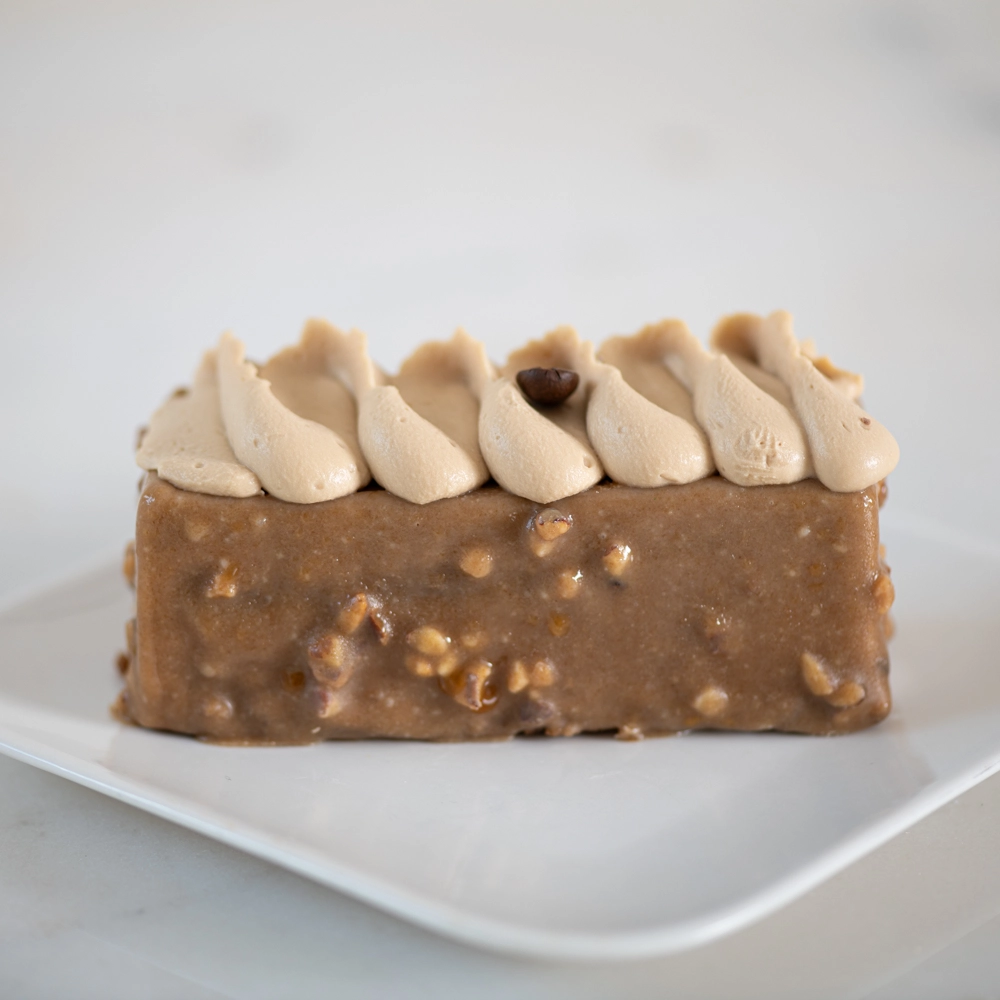 L’entremet café est une ode à l’intensité du café, mariant un biscuit fondant, un croustillant feuillantine et une mousse onctueuse. Chaque bouchée révèle un équilibre parfait entre douceur et caractère.